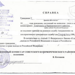 - О выдаче военного билета (на работу)